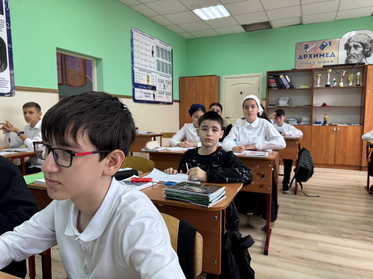В атмосфере мозгового штурма проходит урок физики в 7 классе. Ребята от души стараются показать свои интеллектуальные способности по предмету. Пожелаем им удачи, чтобы из их числа вырастали выдающиеся ученые , подобные Ахмеду Цебиеву.